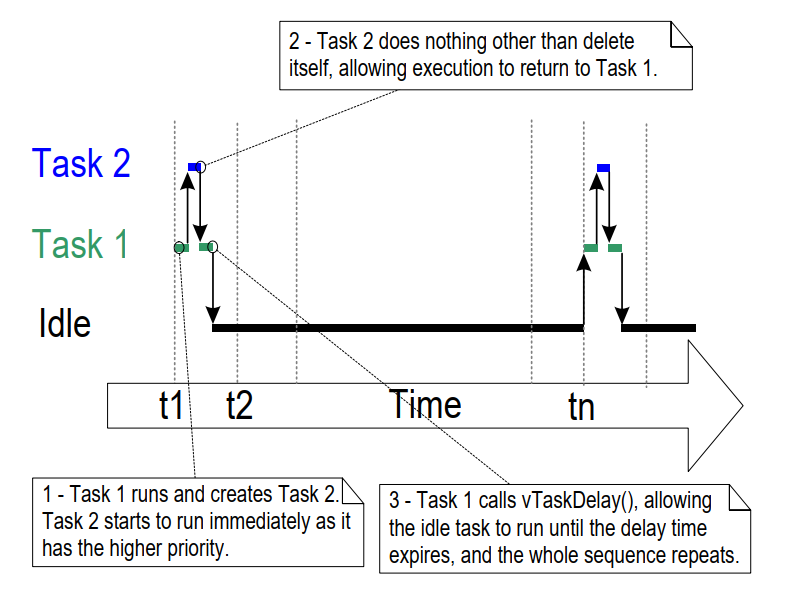 - 如何使用任务实现周期性处理。(后续章节还会说明如何使用软件定时器实现同样功能。)