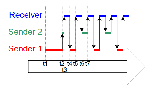 队列可有多个写者,因此满队列上可能有多个任务同时阻塞等待发送完成。此时当队列出现可用空间,仅有一个任务会被解除阻塞。被解除阻塞的总是等待空间的最高优先级任务。若两个或更多阻塞任务优先级相同,则等待时间最长的任务先被解除阻塞。