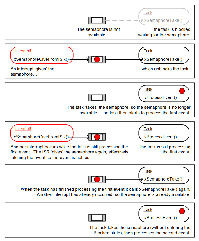 FreeRTOS API可以在中断服务程序中使用。 - 将中断处理延后到任务中的方法。