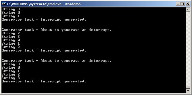 接收字符串指针的任务在队列上阻塞等待消息,到达后打印字符串。其实现见清单 7.23。