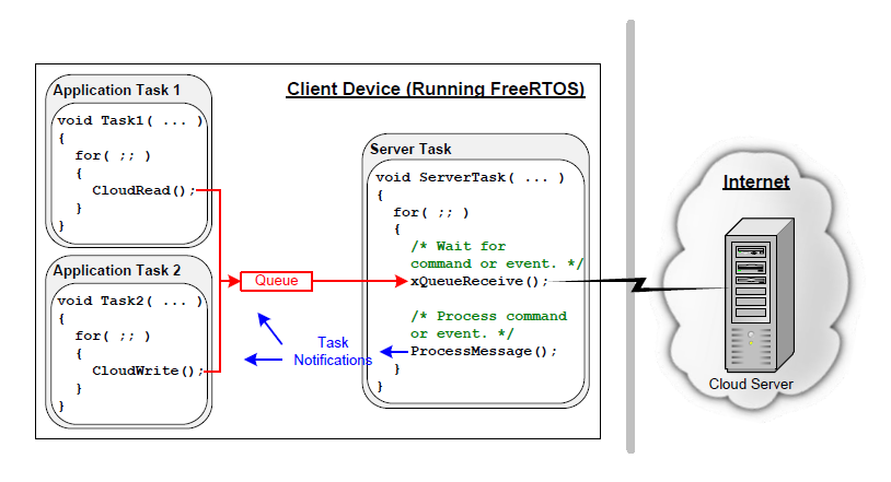 xQueueSend( xServerTaskQueue, &xRequest, portMAX_DELAY );
